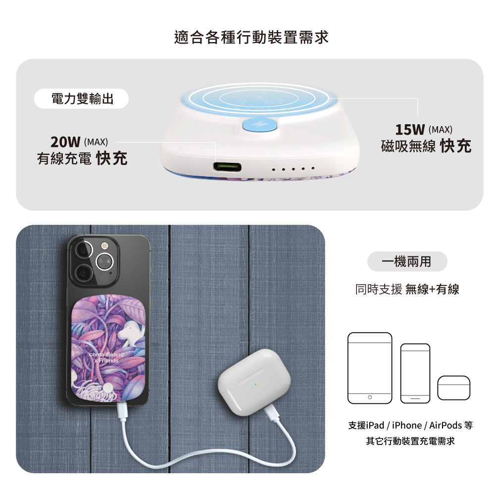 ●支援PD/QC快充20W輸出,可同時幫兩支手機充電