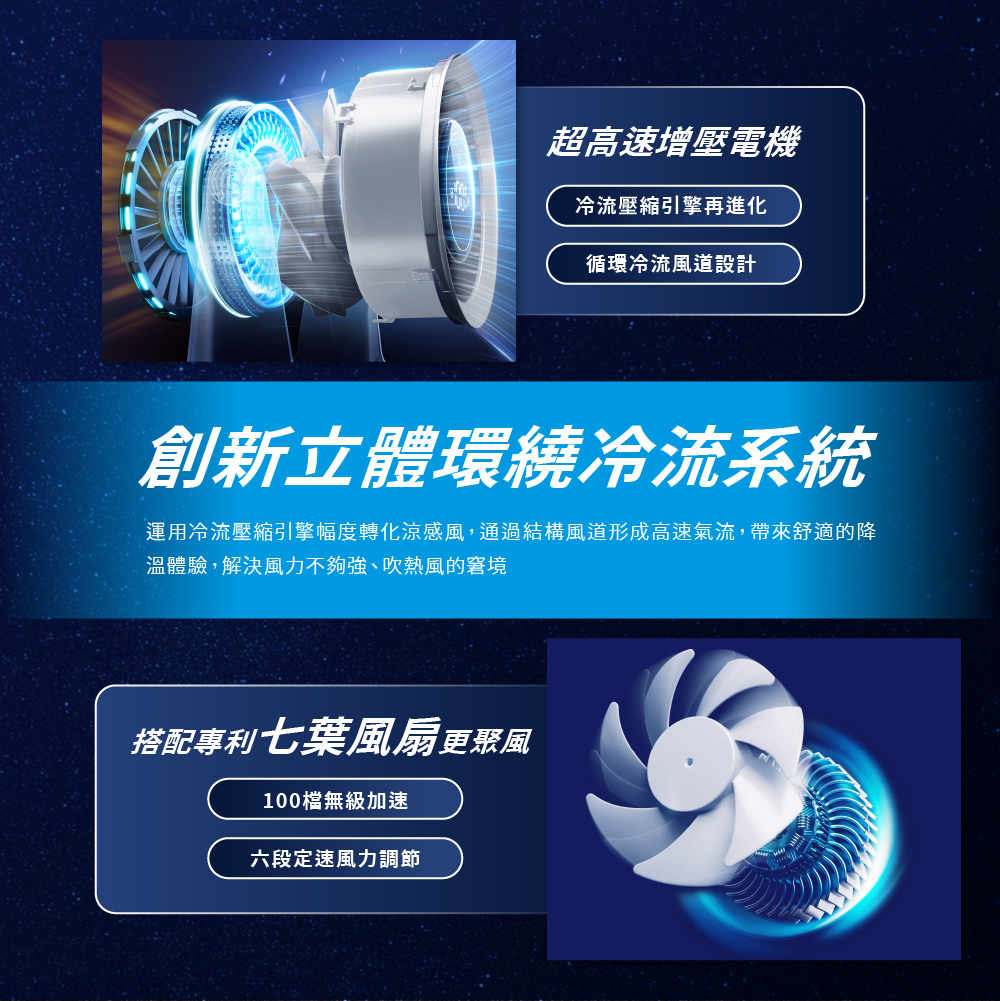 • 立體環繞冰感冷流系統,空氣循環涼爽加倍