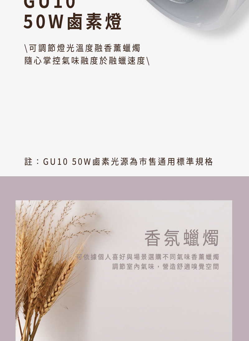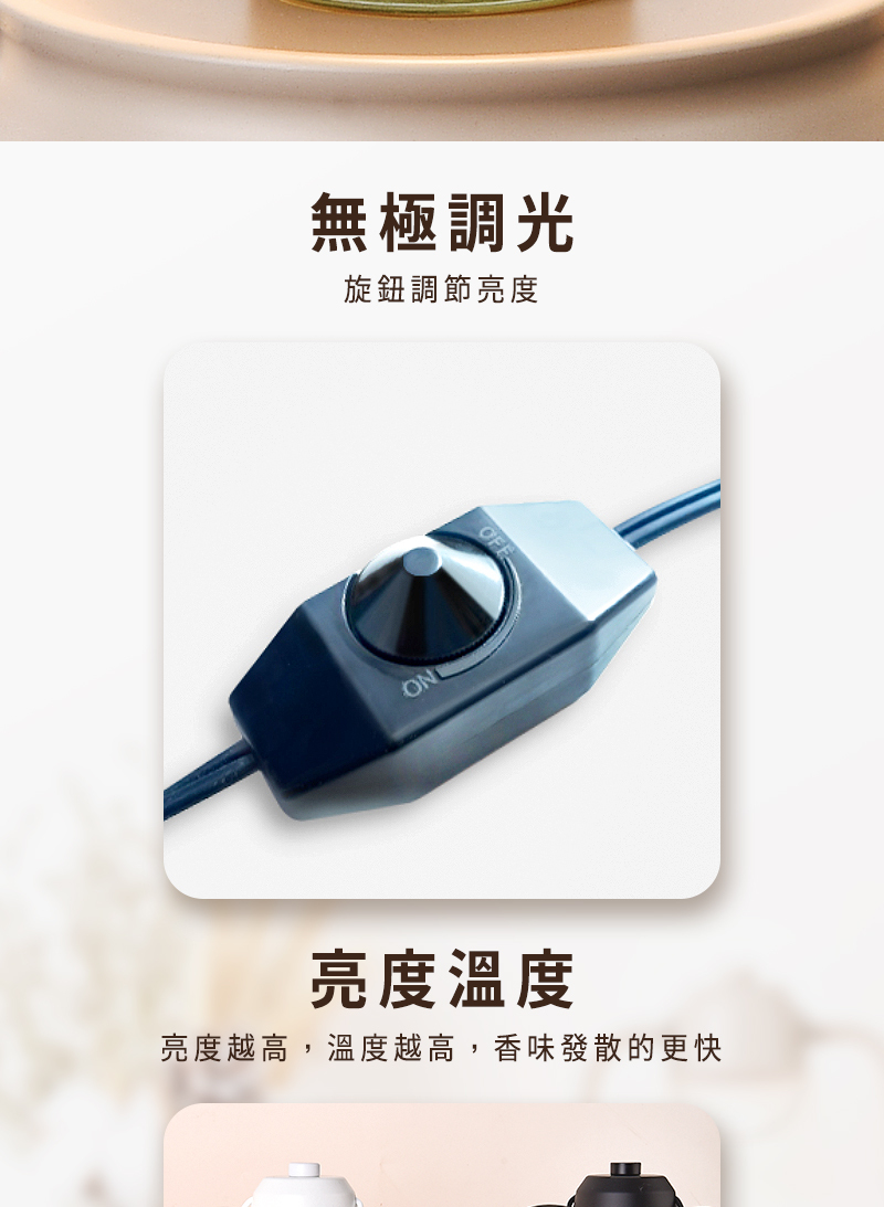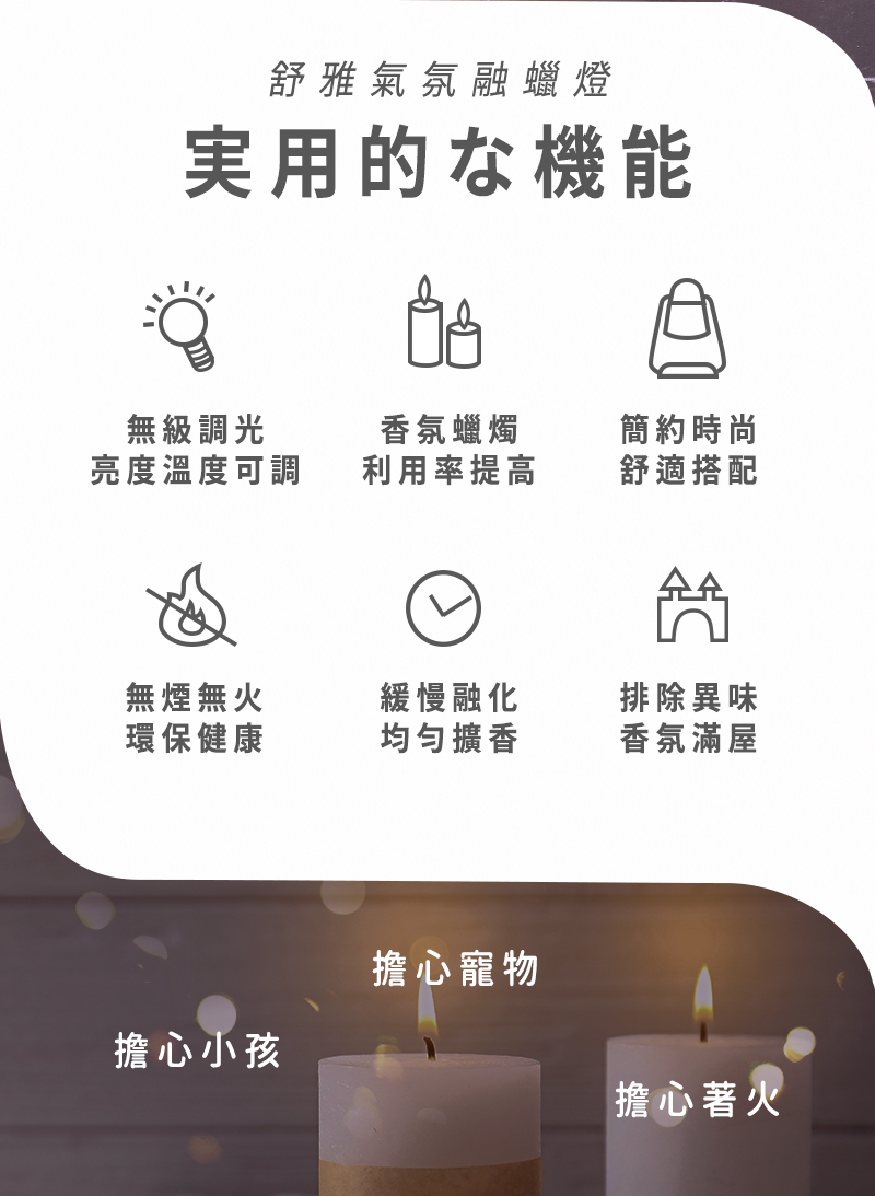 ● 溫度&亮度可調整香氛蠟燭融化速度與氣味濃度
