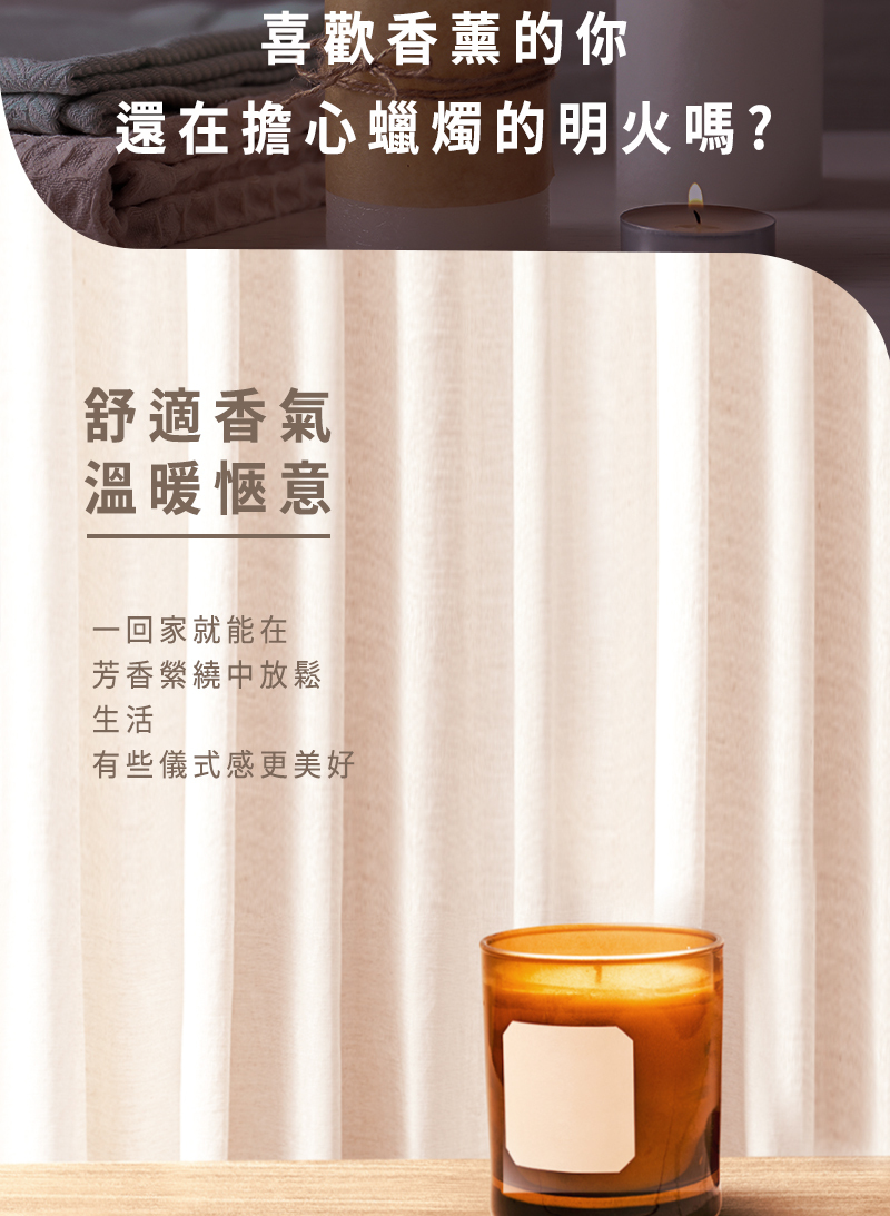 ●可依據個人喜好與場景選購不同氣味香薰蠟燭調節室內氣味,營造舒適嗅覺空間