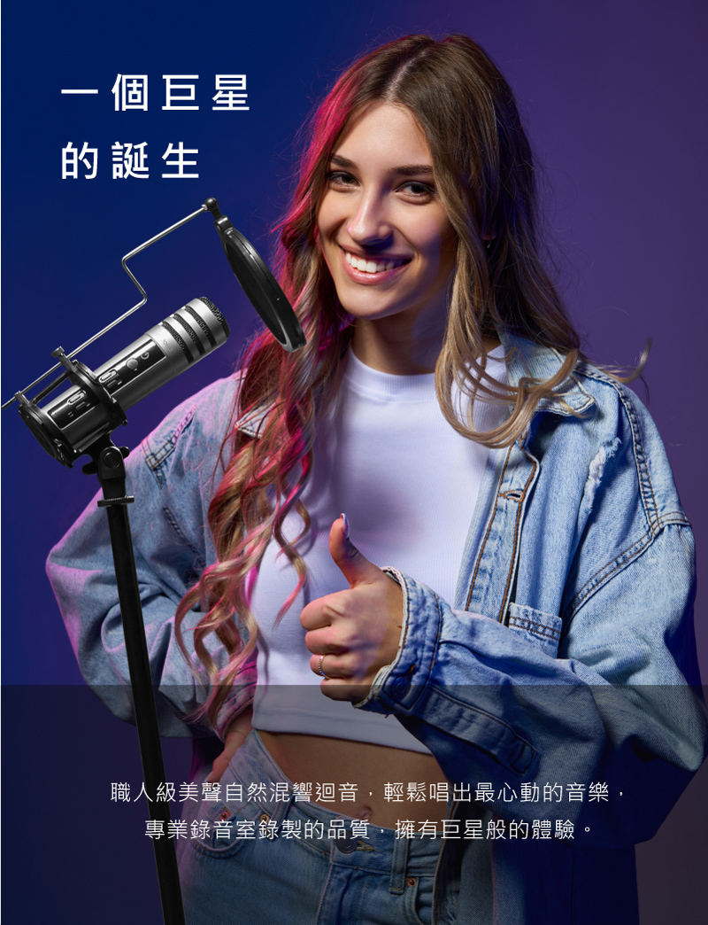 ● 比擬錄音棚等級專業電容式麥克風咪頭,連細微呼吸音也輕鬆收錄。
