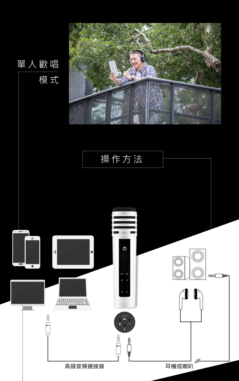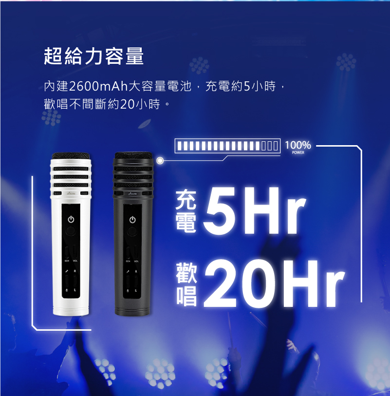● 續航電力長達20小時,歡唱&直播沒煩惱。