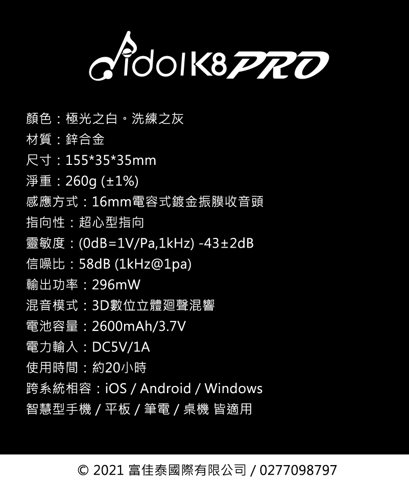 ● 網路熱搜,多人使用好評,idol K8 多年經典代表性產品。