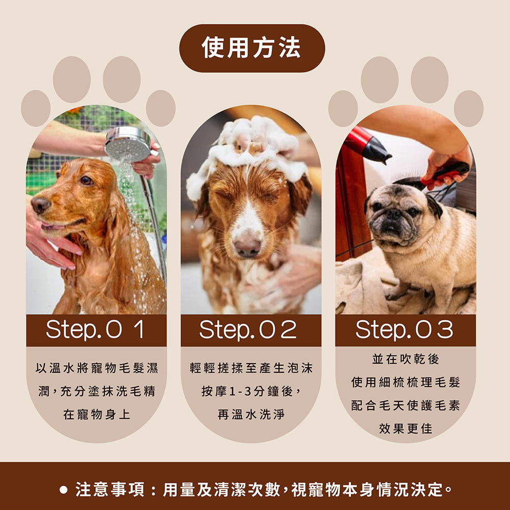 ● 溫和洗淨寵物敏感的肌膚及毛髮