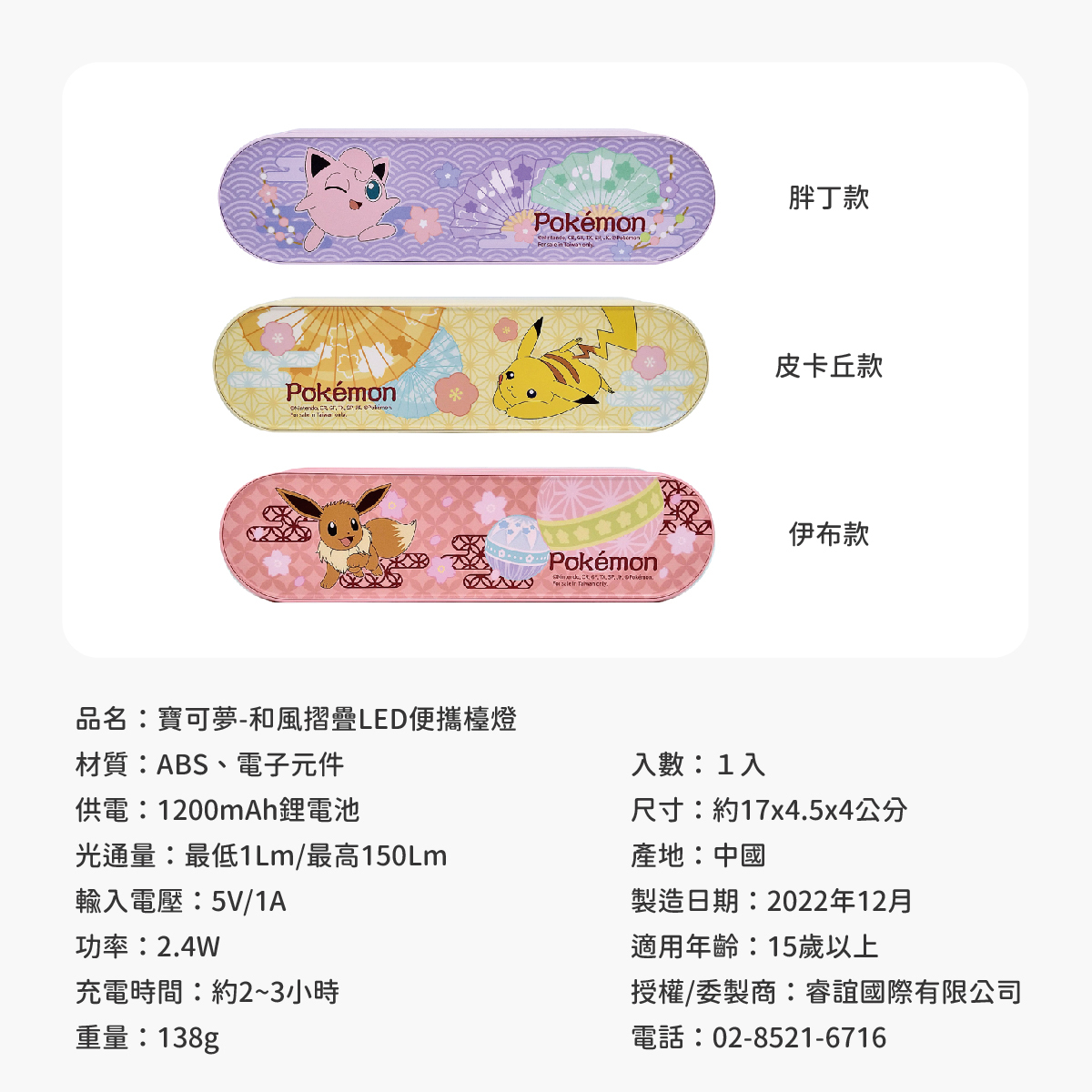 ● 正版授權 寶可夢限定折疊LED台燈,極具收藏與實用價值。