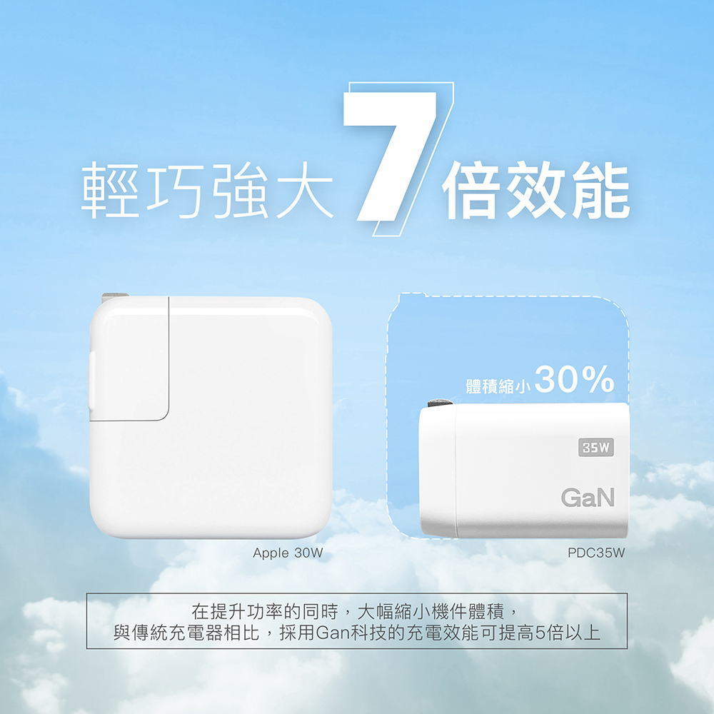 ●黑科技氮化鎵技術:提升功率的同時,大幅縮小充電器體積,充電效率可提高5倍