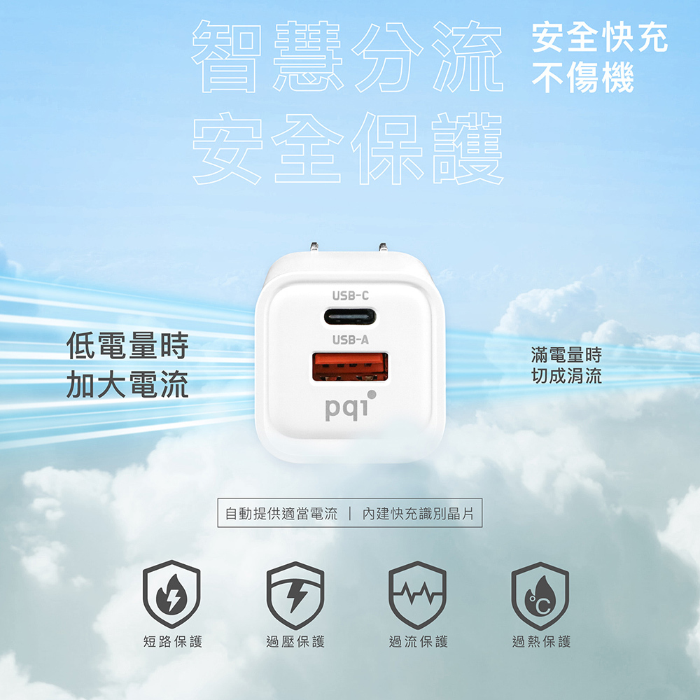 ●智慧雙孔快充:USB-C孔最大輸出為35W,USB-A孔最大輸出為18W