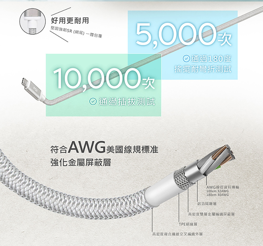 ●PQI qCable C100傳輸線支援快速充電,最大功率可達60 W,