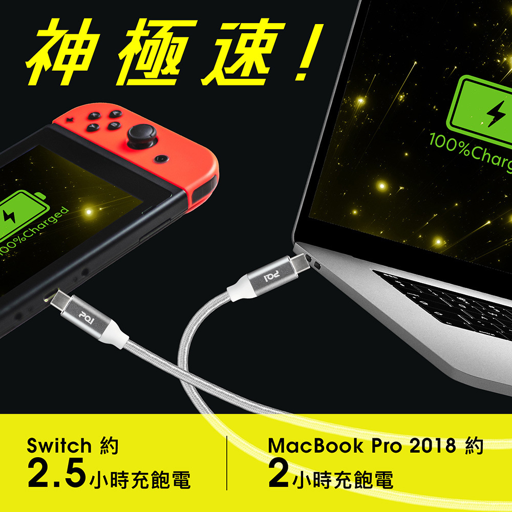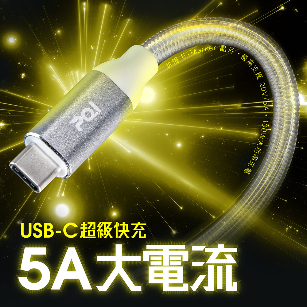 支援高瓦數設備充電:內建E-Maker識別晶片,支援最高100W大功率充電(20V/5A)