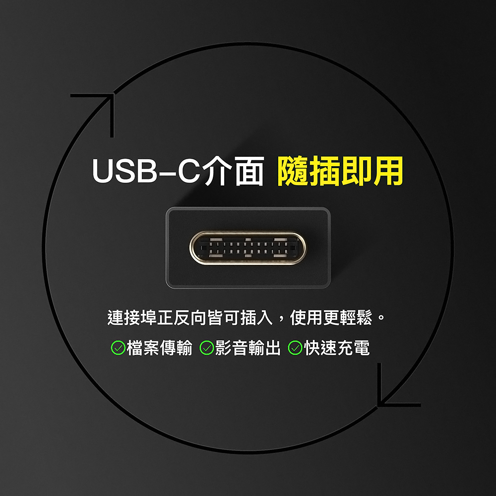 USB-C 介面,隨插即用:傳輸、供電、影像傳輸一條就夠