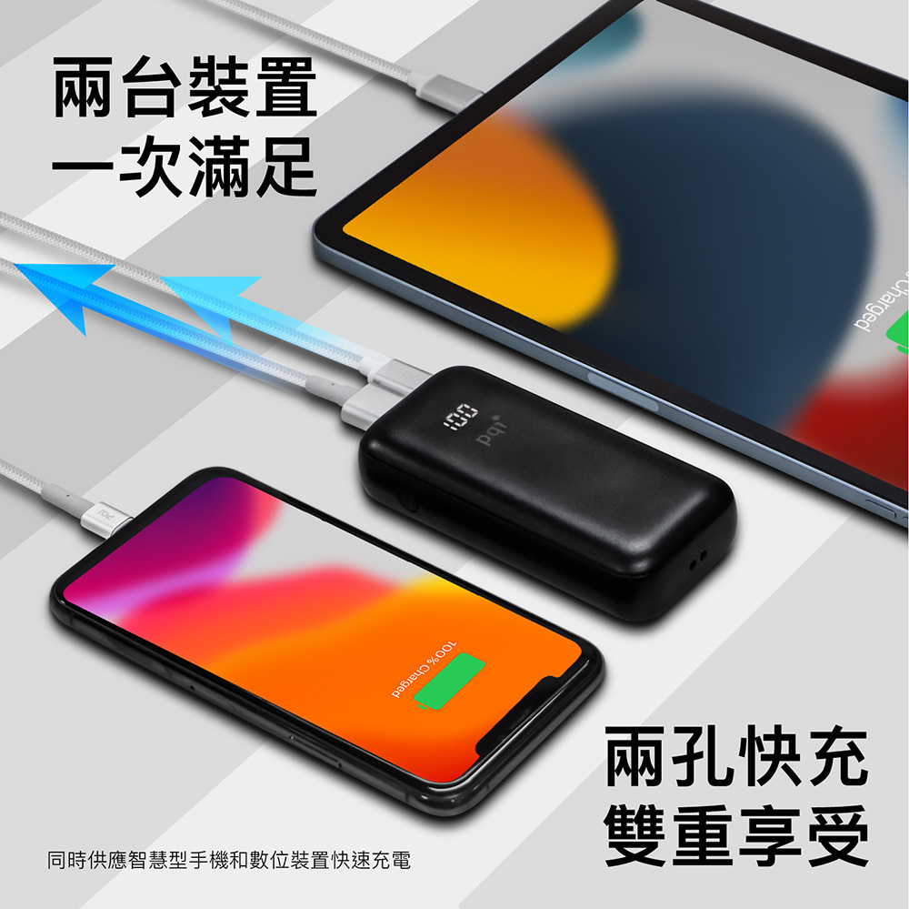 兩個裝置一次充電,可同時為智慧型手機和平板電腦等裝置充電