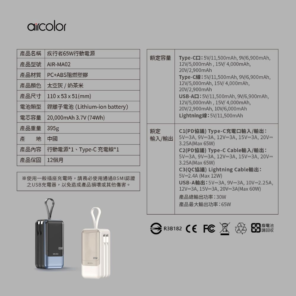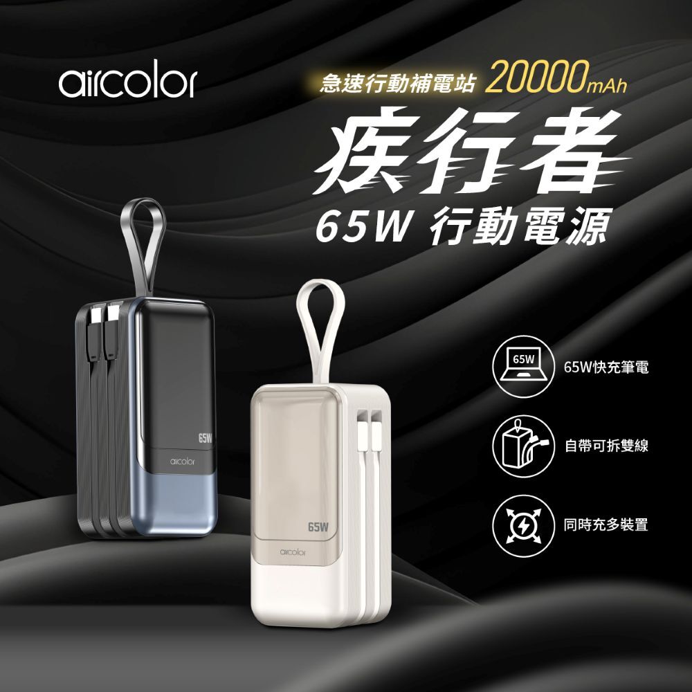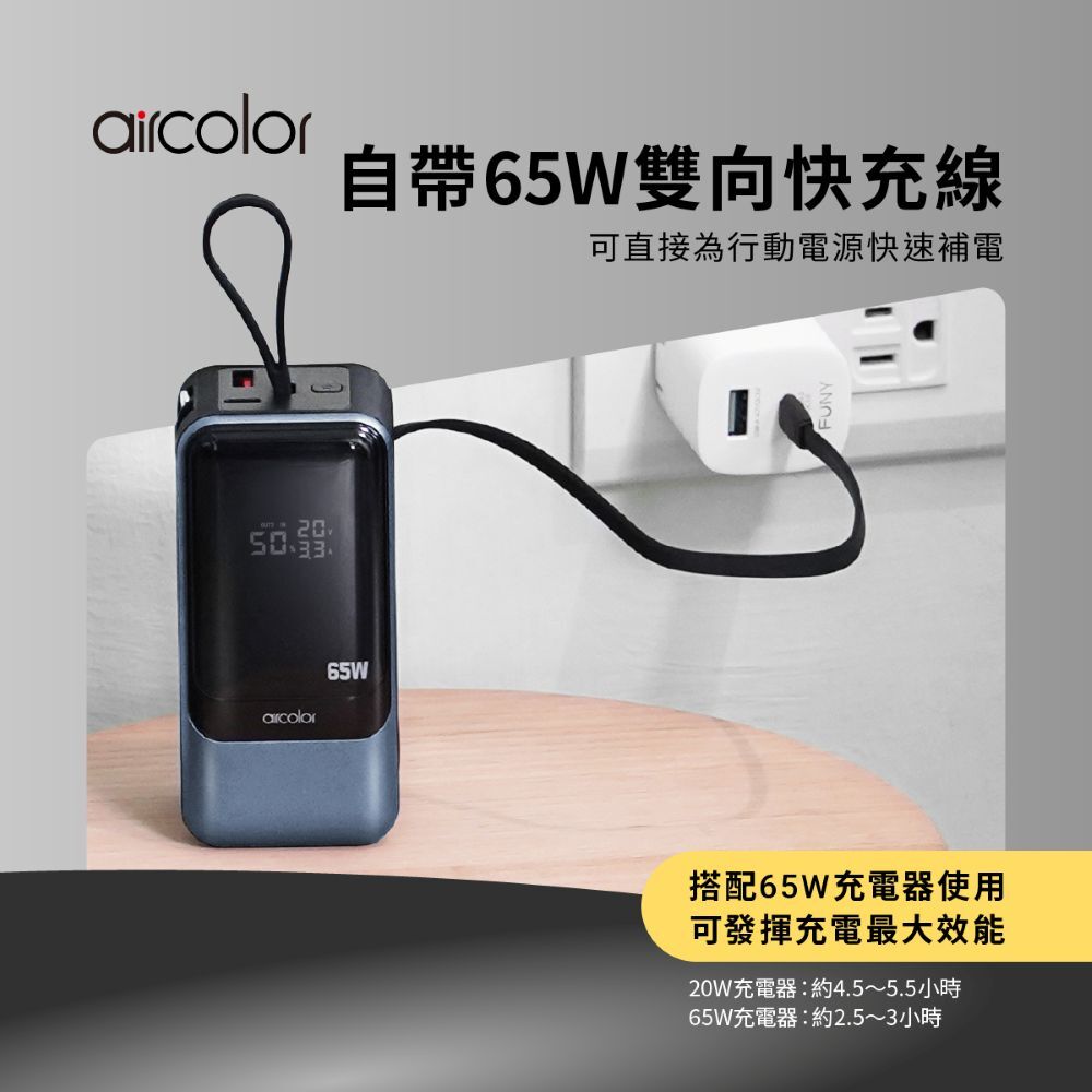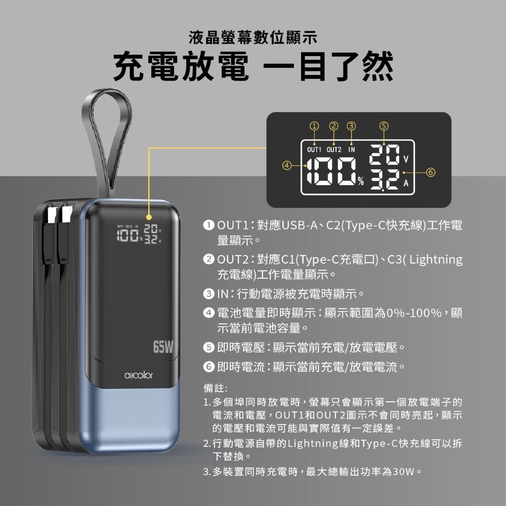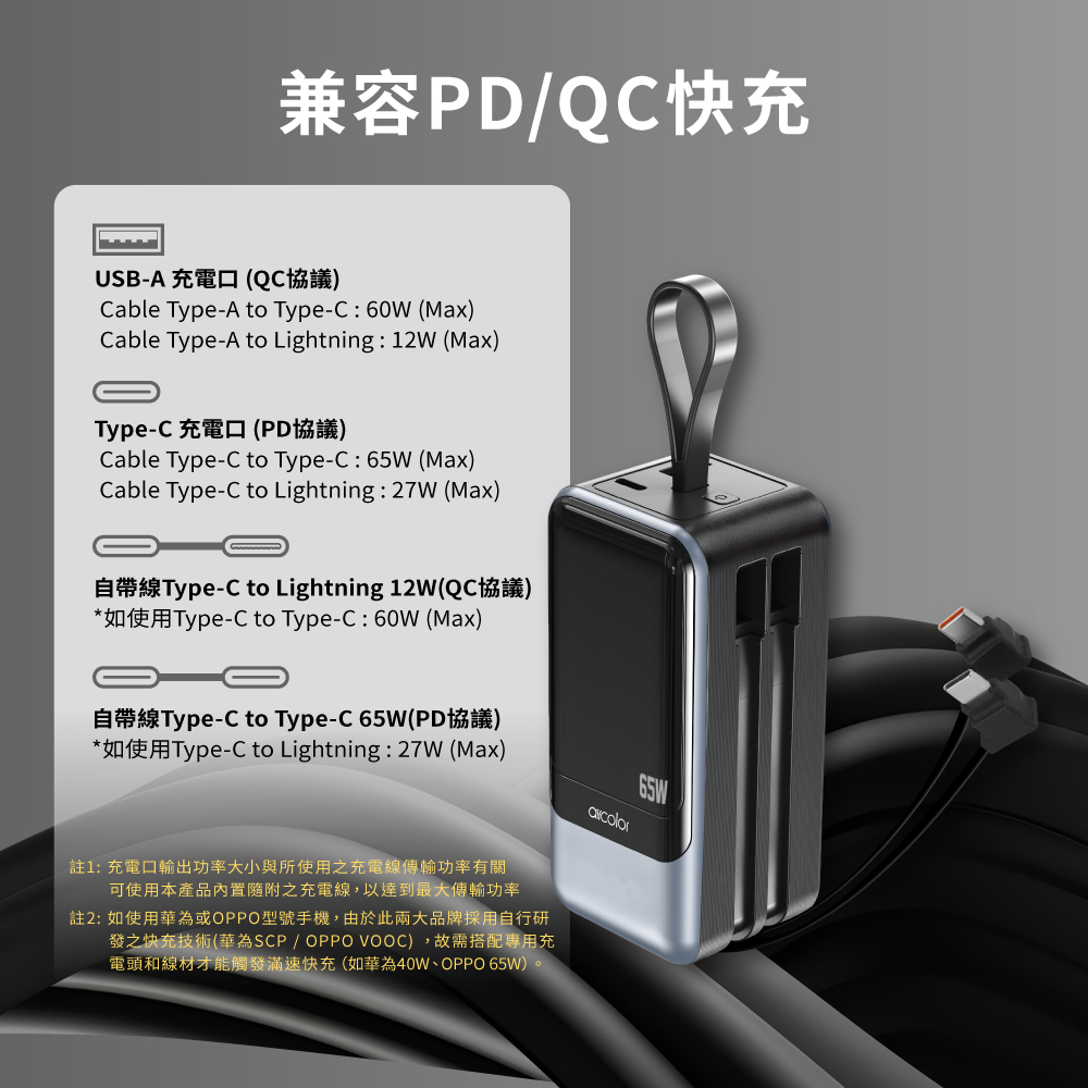 .自帶65W雙向快充線,可即時為行動電源迅速補電