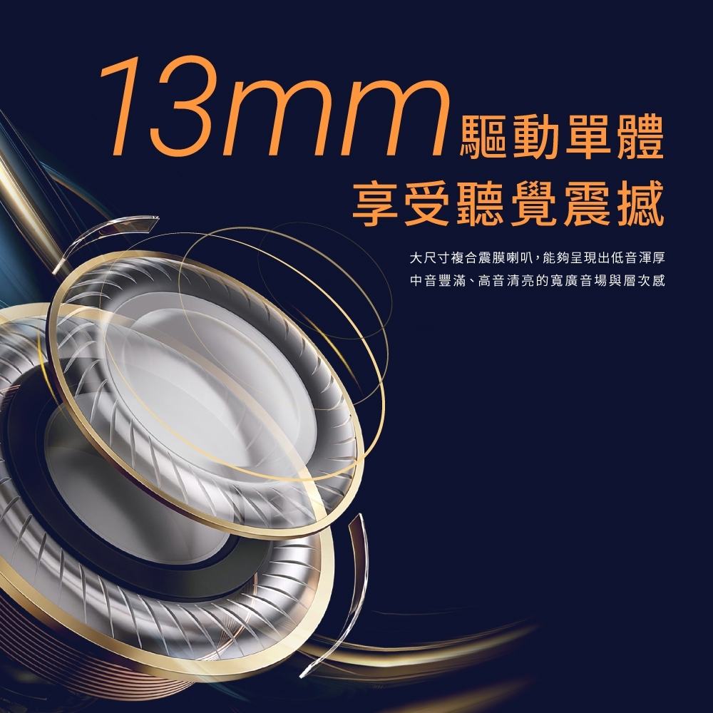 耳機單體:ø13mm 雙層複合震模降噪喇叭