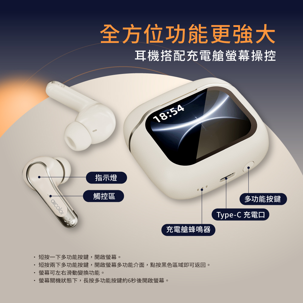 .彩色智慧觸控螢幕 耳機功能一指掌握