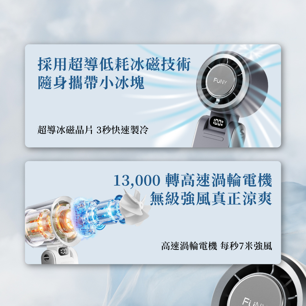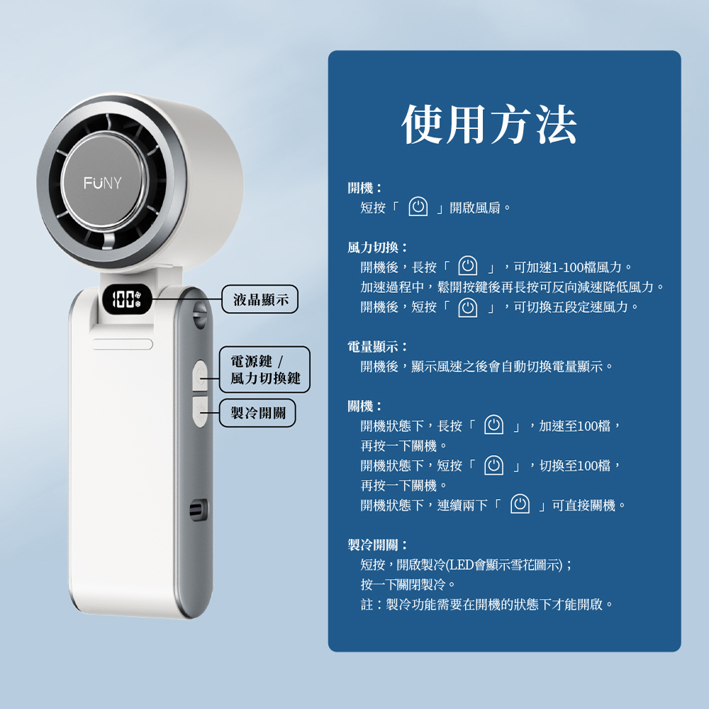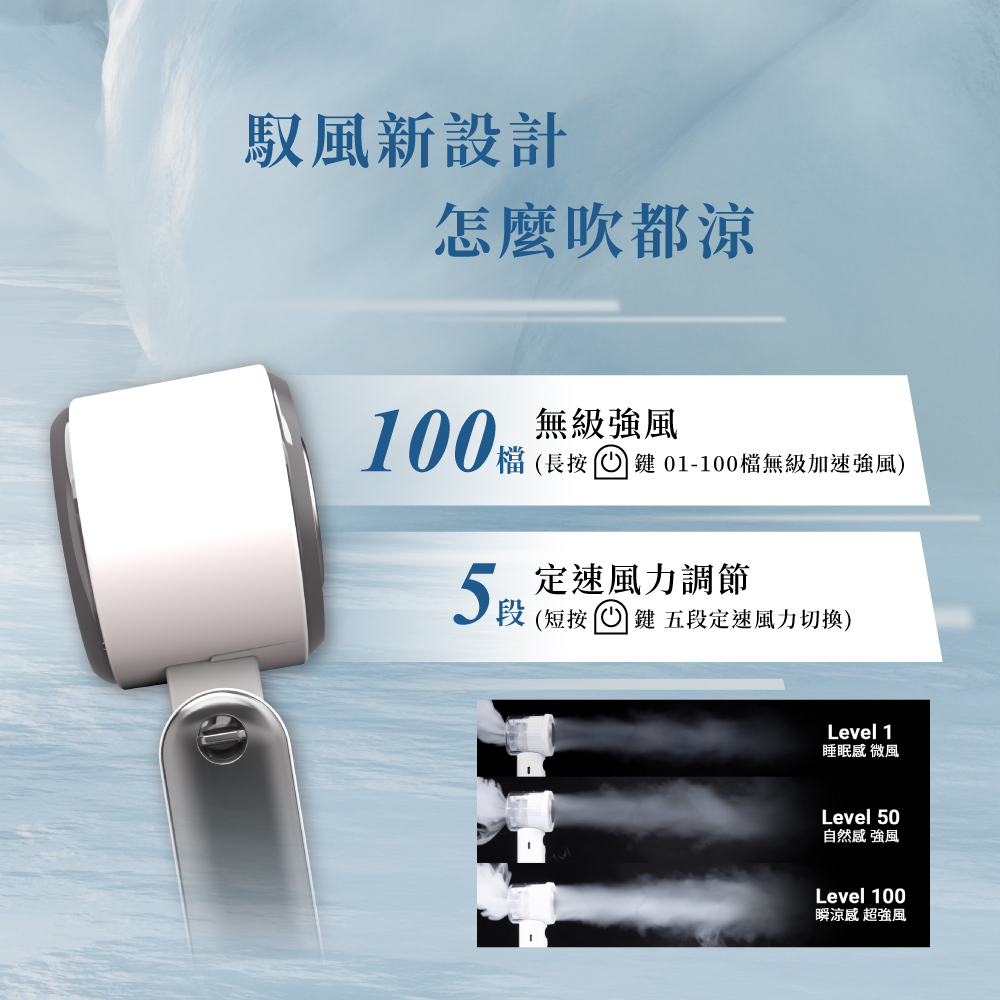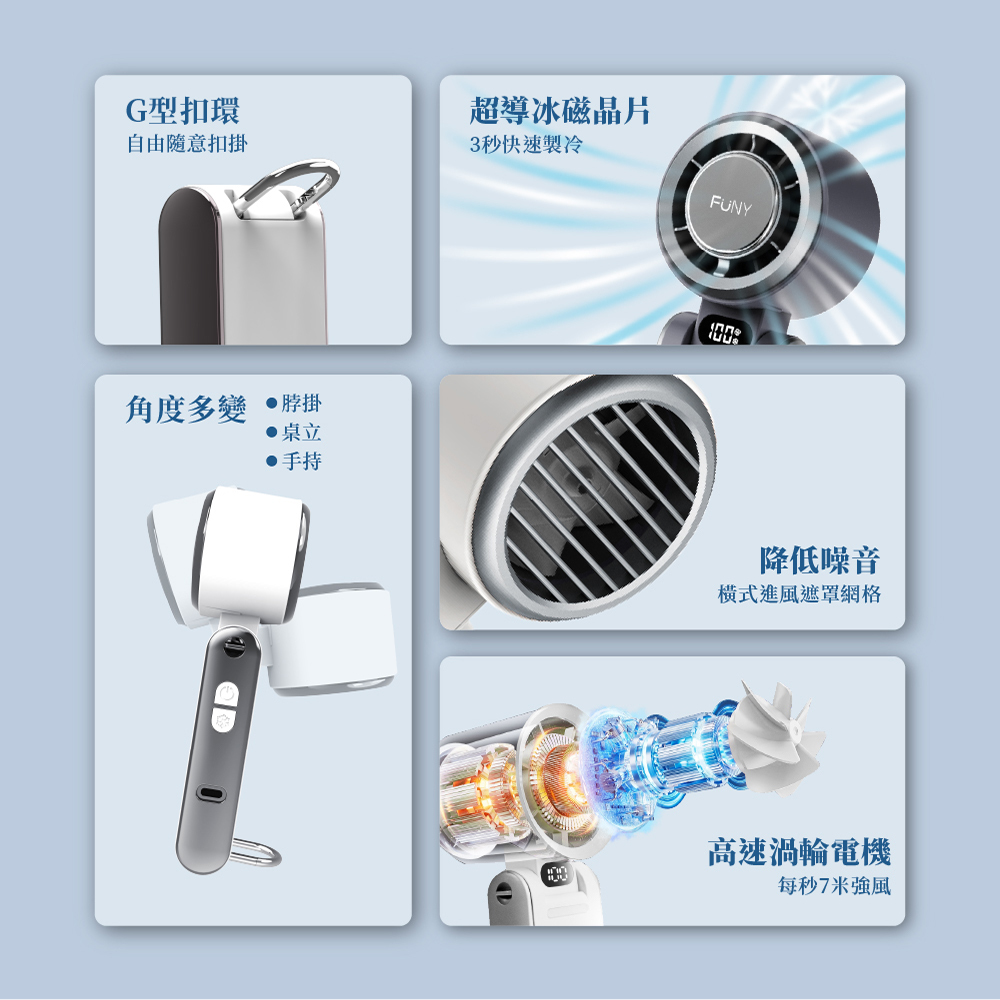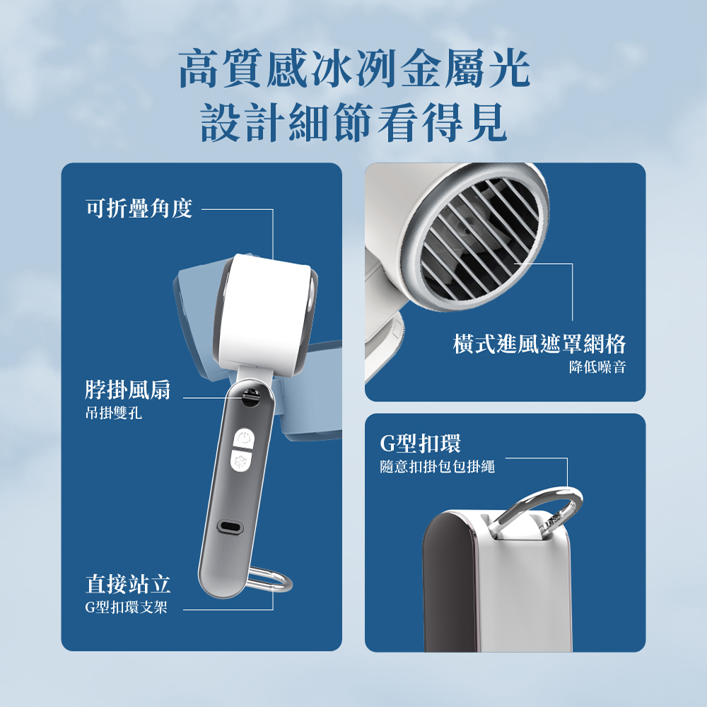 .風扇頭部角度可折,脖掛\手持\桌立怎麼吹都行
