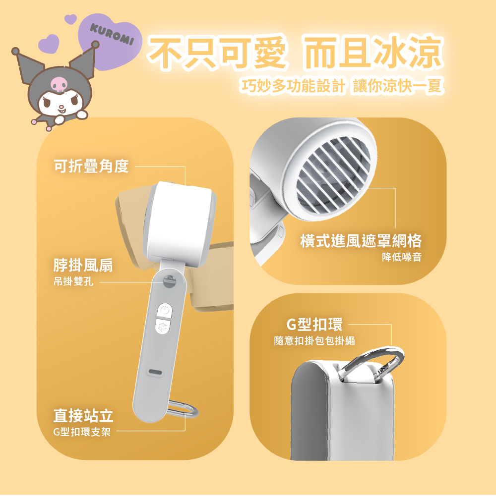 .風扇頭部角度可折,脖掛\手持\桌立怎麼吹都行