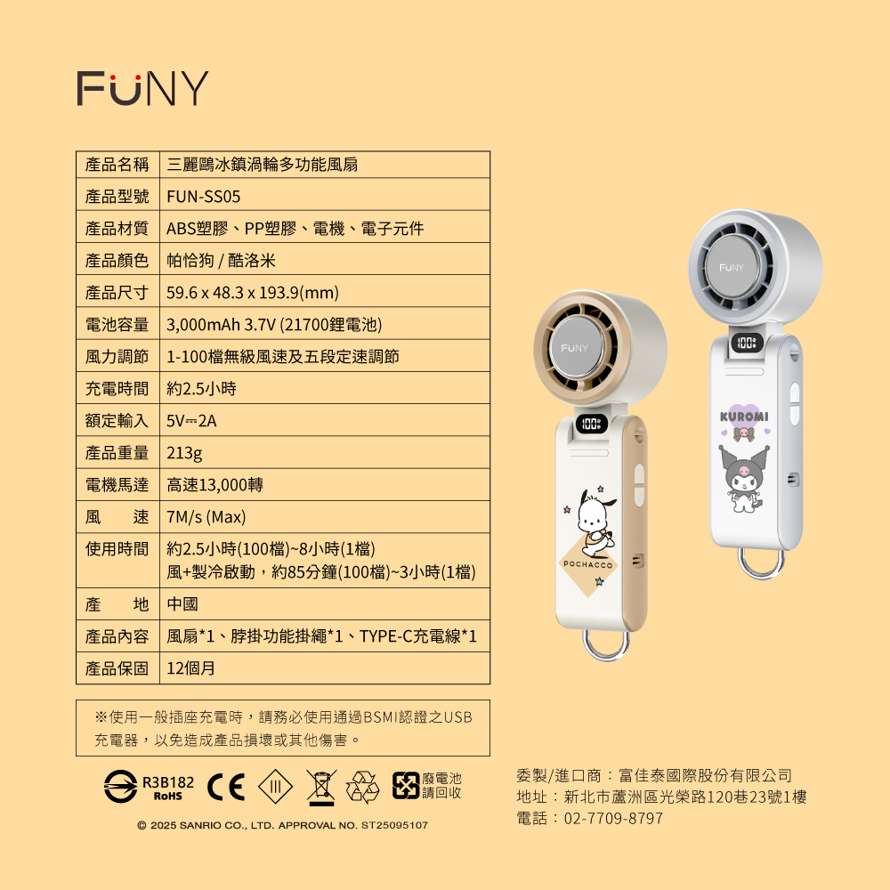.三麗鷗人氣偶像酷洛米\ 帕恰狗製冷風扇