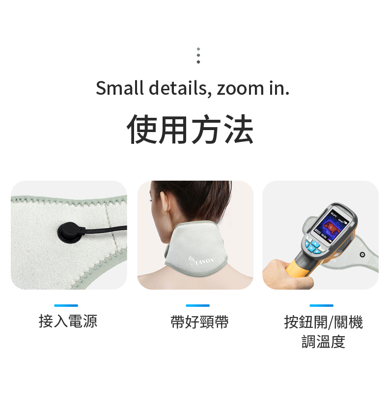 專為肩頸部位設計,運用石墨烯黑科技,釋放深層熱能,舒緩長時間工作或運動後的肌肉疲勞;獨特的熱療效果,有效緩解緊繃、痠痛與僵硬感,促進血液循環,讓充分身心獲得舒緩,恢復健康活力。